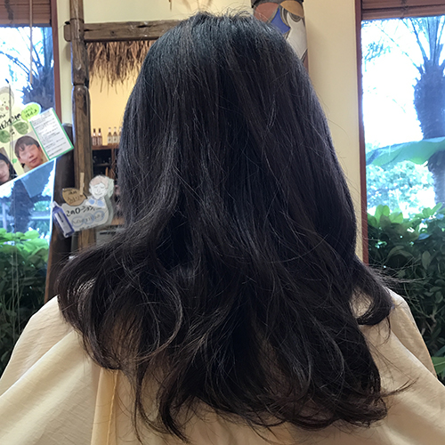 くせ毛でまとまらず、ボリュームが出ていた髪がこんなに艶やかに収まりました(^^)