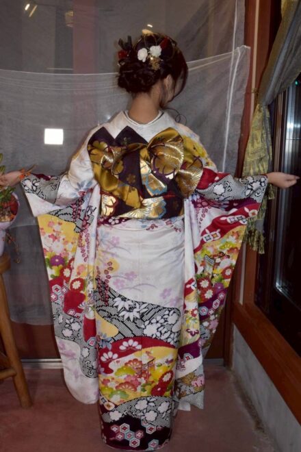 新成人の皆様、ご成人おめでとうございます。 皆さんの未来が、今日選んだ晴れ着のように鮮やかに花開くことを願って。
