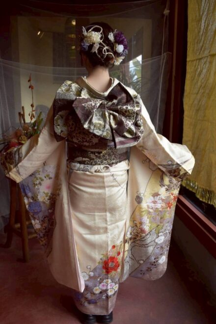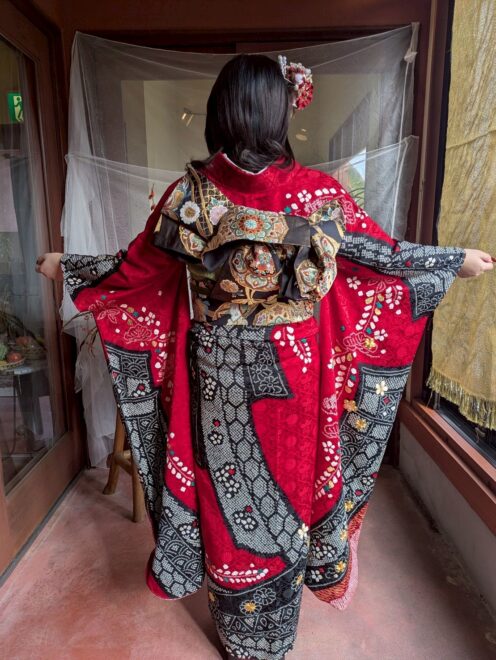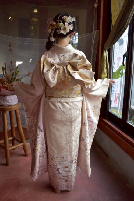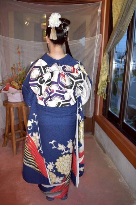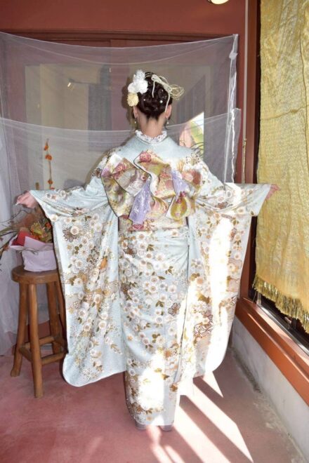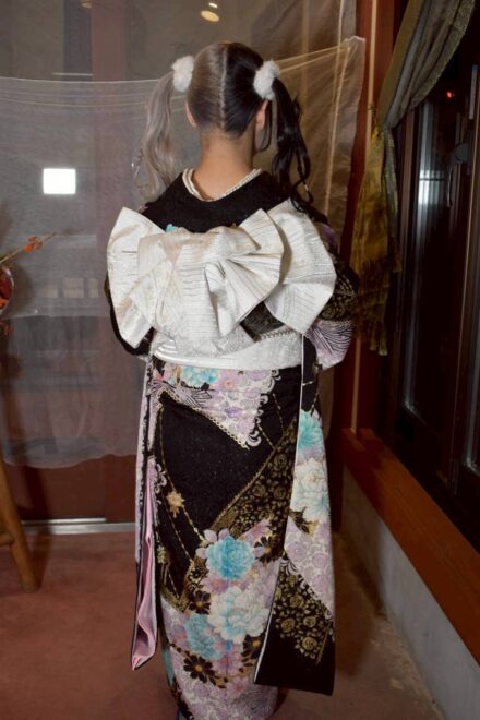 早朝の静まり返った店内に、華やかな振袖を纏ったお客様が次々と訪れます。 鏡の前で少しずつ「大人」の表情へと変わっていく皆さんの姿。仕上がりをひと目見て、「わあ、すごい!」と瞳を輝かせる瞬間。その一つひとつの煌めきに、私たちスタッフの緊張も心地よい喜びに変わっていきました。